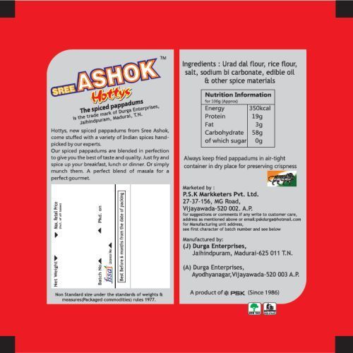 Leading Manufacturers, Exporters, Wholesaler, Trader and Distributor of 3 Inch Madras Plain Poppadoms, 3 Inch Madras Appalam Papad, 4 Inch Madras Plain Poppadom, 4 Inch Madras Appalam Papad, 4 Inch Plain Appalam Papad, 5 Inch Plain Appalam Papad, 4 Inch Black Pepper Appalam Papad, Hottys Masala South Black Pepper Urad Appalam Papad, Sri Ashok Masala Appalam Chips and Sri Ashok Pesara Appalam Papad from Vijayawada.
