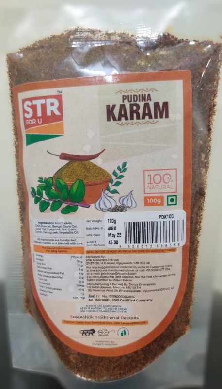 Leading Manufacturers, Exporters, Wholesaler, Trader and Distributor of 100 Gram Idli Podi Powder, 100 Gram Kakarkaya Karam Powder, 100 Gram Karvepaku Karam Powder, 100 Gram Kotimeera Karam Powder, 100 Gram Nalla Karam Powder, 100 Gram Podina Karam Powder, Idli Podi Powder, Kakarkaya Karam, Kandi Podi Powder, Karvepaku Karam, Kotimeera Karam, Nalla Karam, Palli Karam, Pappala Podi, Podina Karam and Putanala Podi from Vijayawada.